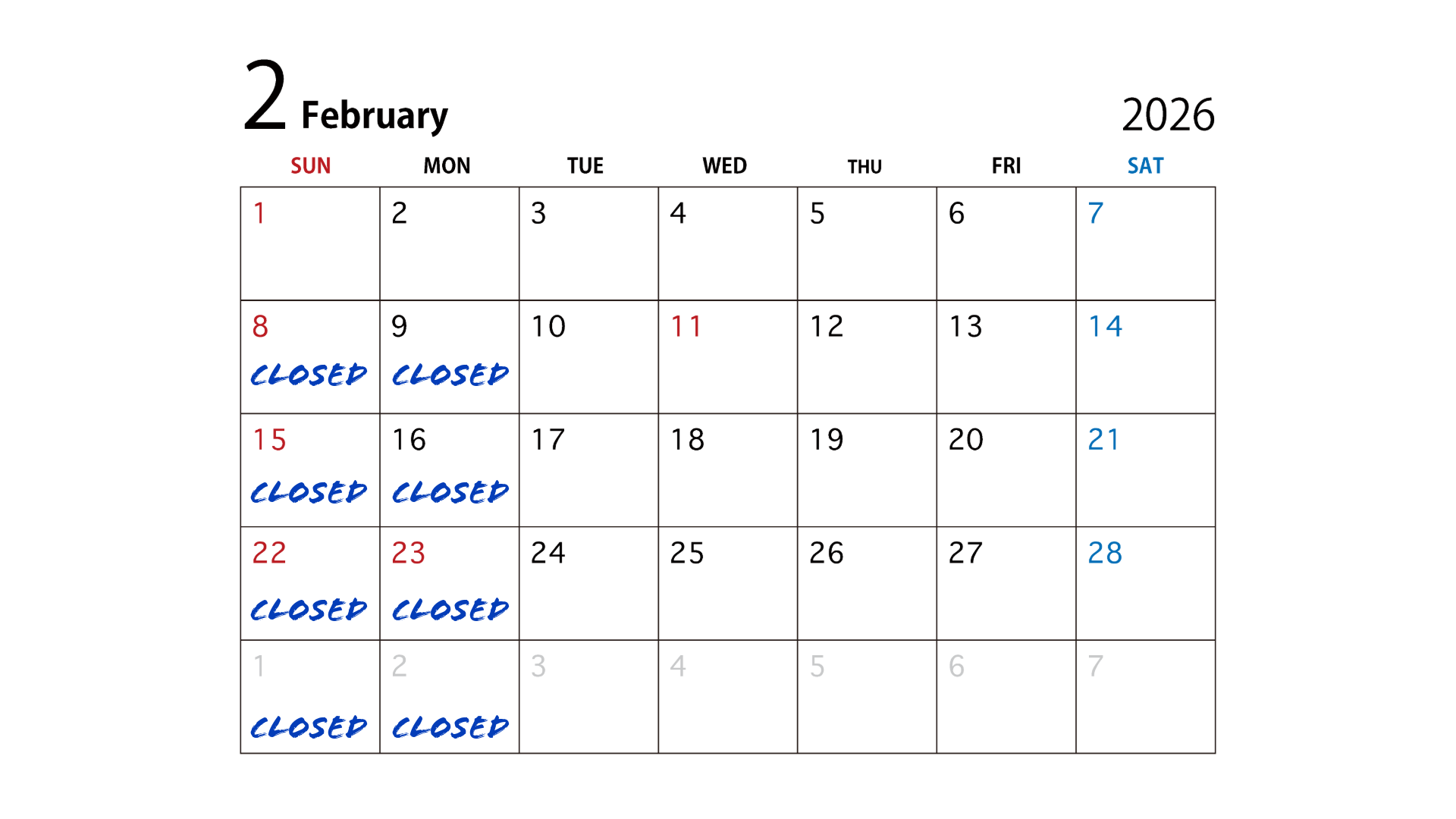 February Business Hours